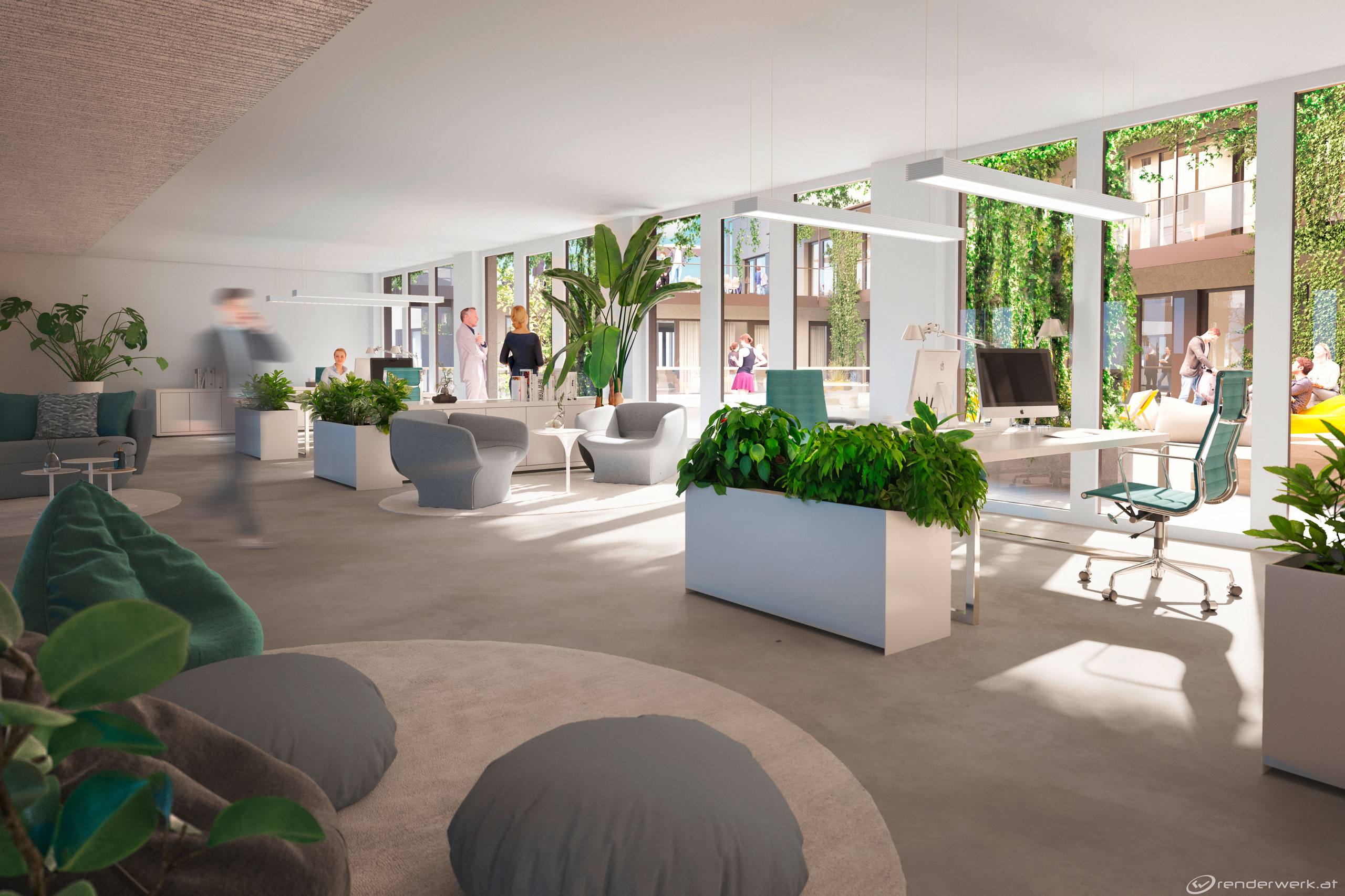 Ideal für Unternehmer, die Innovation und Gemeinschaft schätzen, bietet atrium³ flexible und modulare Gewerbe- und Businessflächen, die sich individuell an Ihre Bedürfnisse anpassen – ob Büro, Praxis, Geschäftsstelle oder Werkstätte. Besonderes Highlight sind die gemeinschaftlich genutzten Bereiche wie Dachgarten, Innenhof und Lounge, die Raum für informelle Treffen, Veranstaltungen und Erholung bieten.