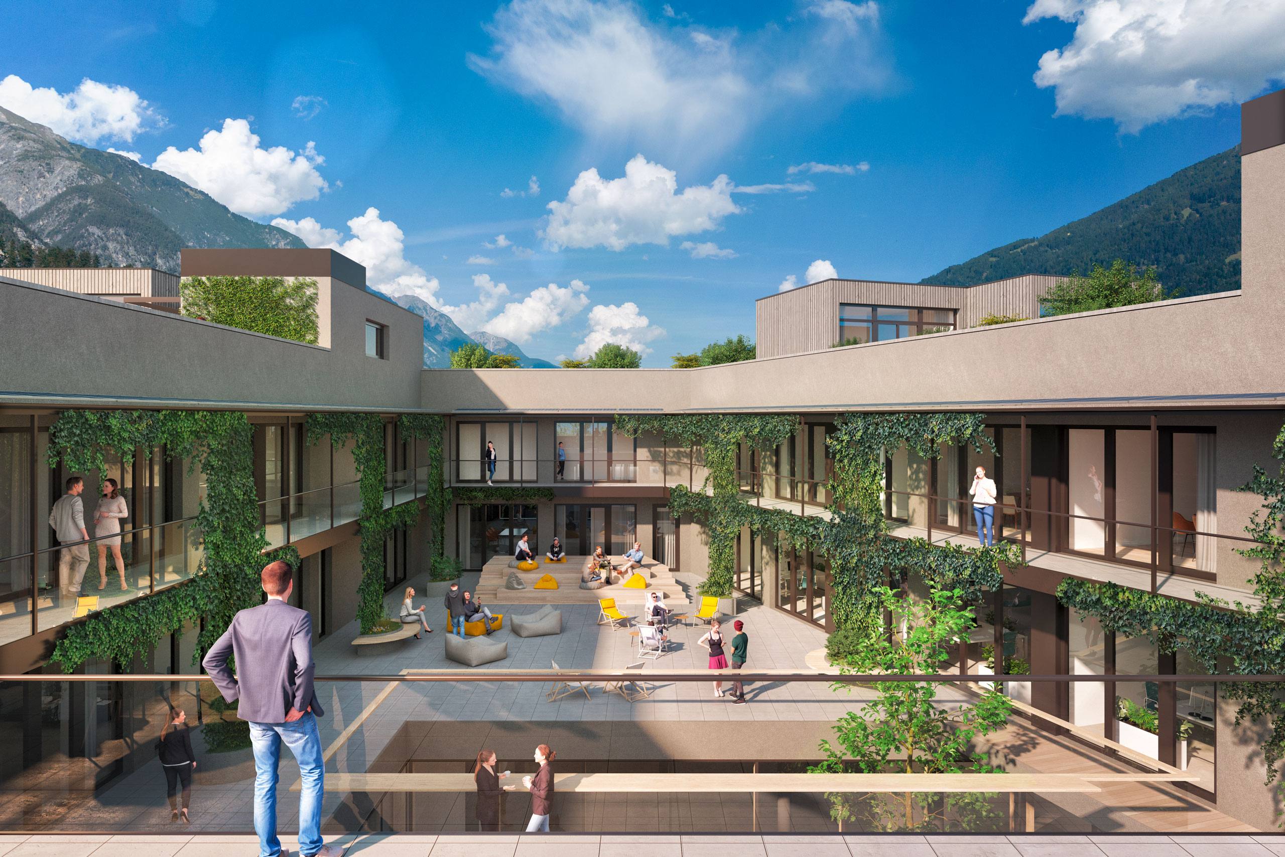 atrium³ schafft eine Arbeitswelt, die über das Gewöhnliche hinausgeht, indem sie kreative, kommunikative und inspirierende Begegnungen fördert. Hier treffen sich Menschen aus Nah und Fern, Jung und Alt, um gemeinsam Neues zu gestalten. Nachhaltigkeit steht dabei im Zentrum unseres Handelns: Mit smarter Haustechnik, regenerativer Energie, E-Ladestationen und einer Bike-Sharing-Station leisten wir einen Beitrag zur Agenda Tirol 2050. Gleichzeitig setzen wir auf soziale Nachhaltigkeit, indem wir Lebensqualität und Vielfalt durch einladende Begegnungszonen fördern.